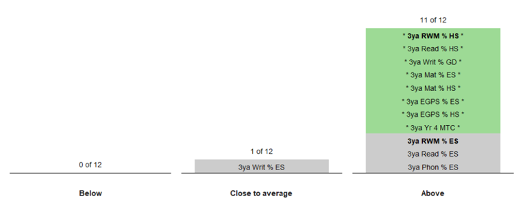 - Key Stage 2 - RWM (Reading, Writing & Maths), Read (Reading), Writ (Writing), Mat (Maths), EGPS (English grammar, punctuation and spelling)